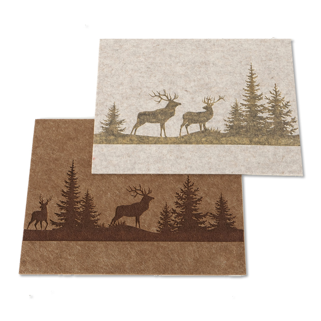 Filz Tischset Hirsch Ludwig, Hirsche im Wald, beige, 45x35cm, Boltze
