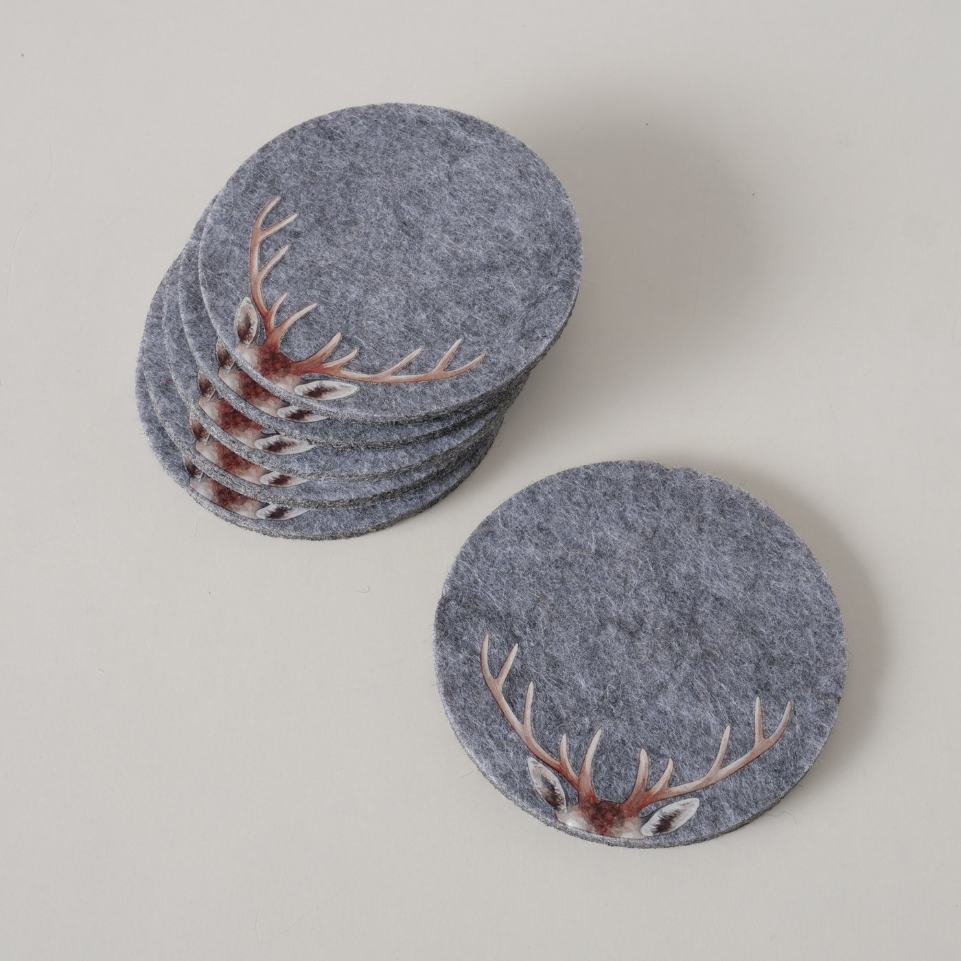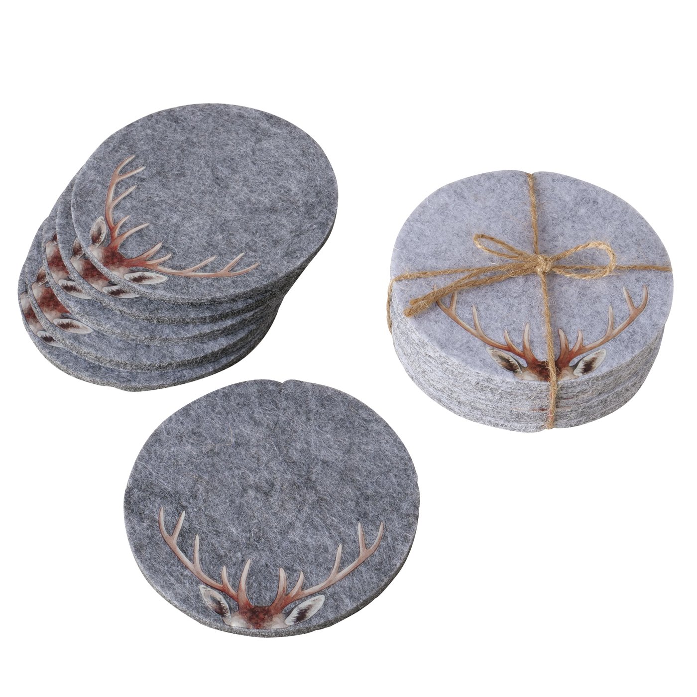 Filz Untersetzer Hirsch Aspen, Hirschgeweih, dunkelgrau, Ø10cm, 6tlg, Boltze Home Collections