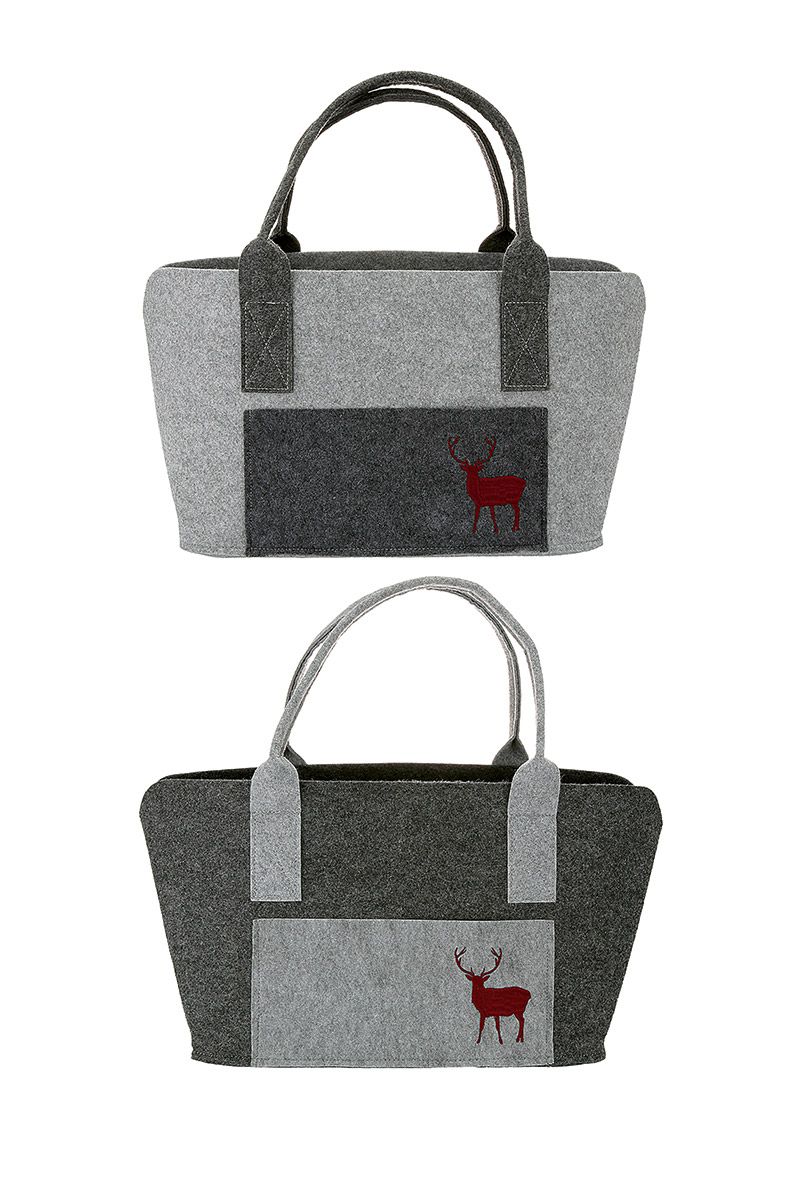 Filztasche Hirsch ,mit Seitenfach 26x44cm helles grau Gilde