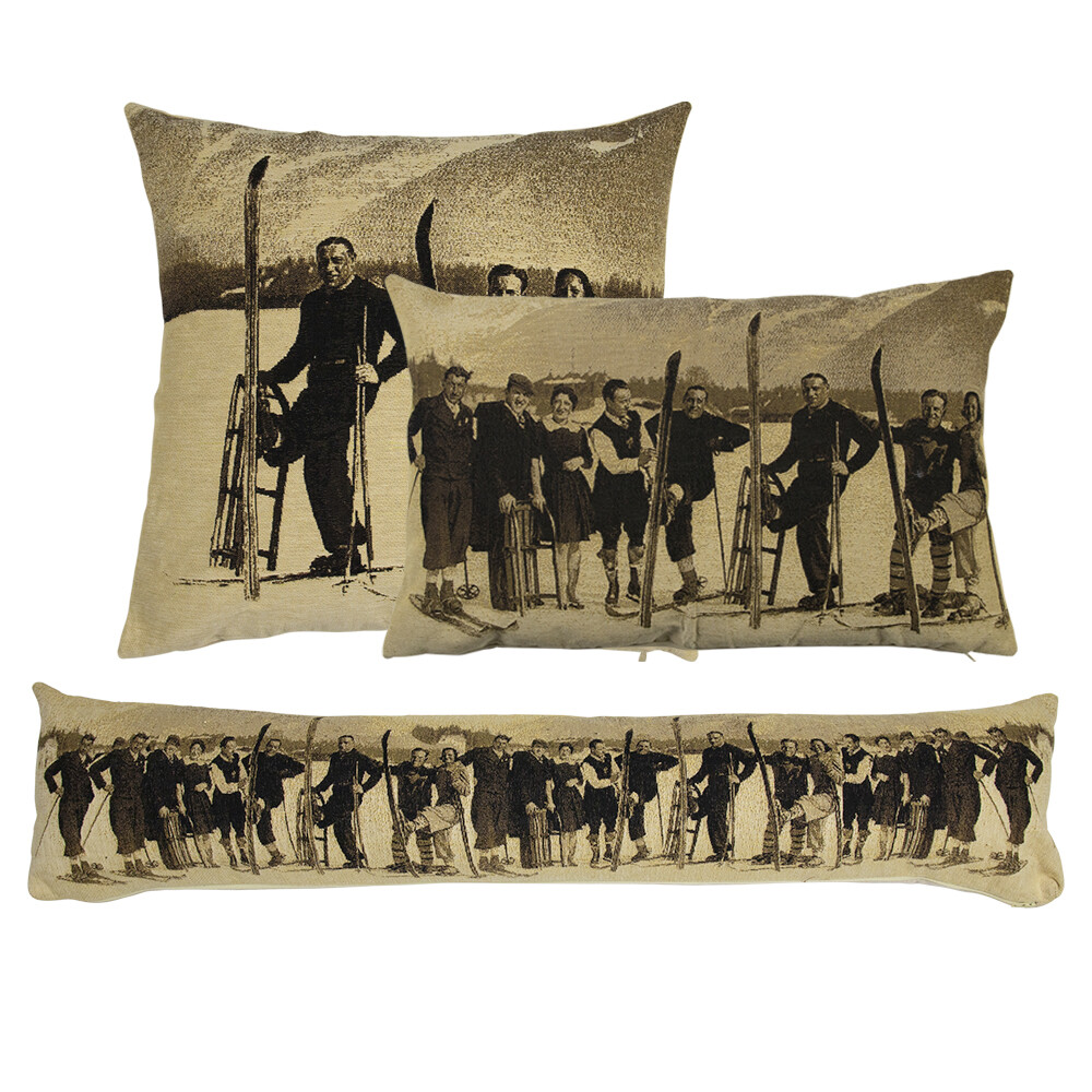 Gobelin Kissen, Mann auf Ski, Sepia, 45x45cm, Mars & More