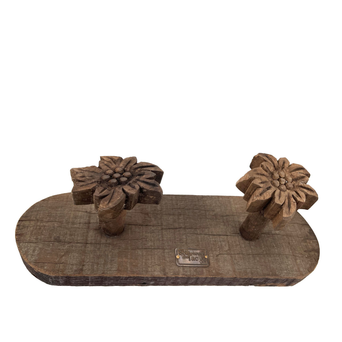 Holz Garderobe mit 2 Edelweiß, 30cm, Les Sculpteurs du lac