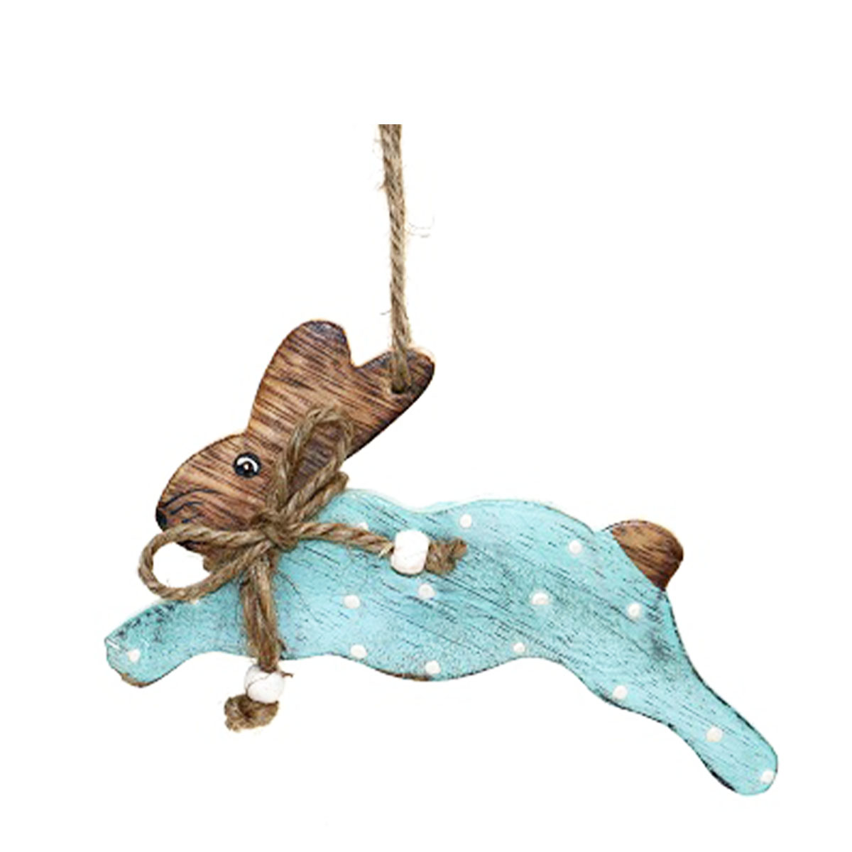 Holz Hase mit Punkte, blau, 15cm, Hänger