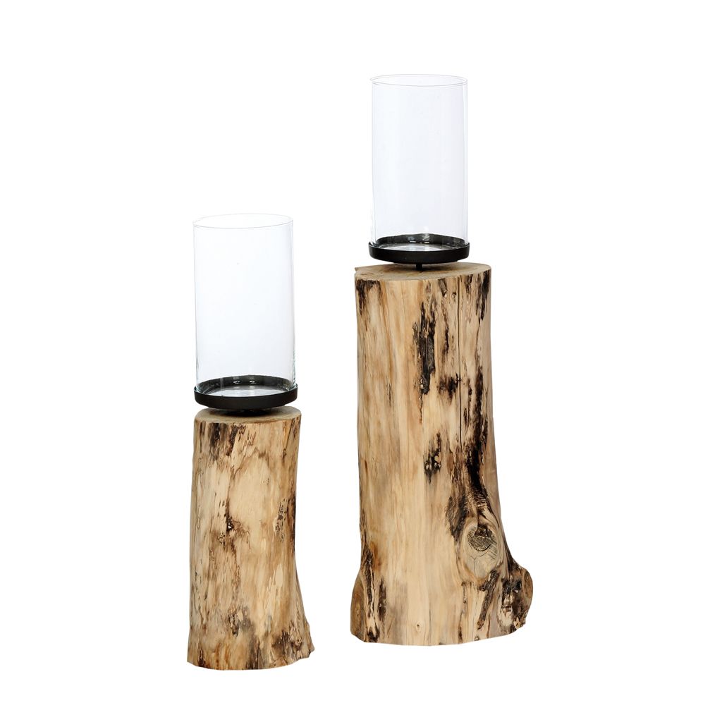 Holz Windlicht, Baumstamm, Eiche natur, 110cm, WMG Grünberger