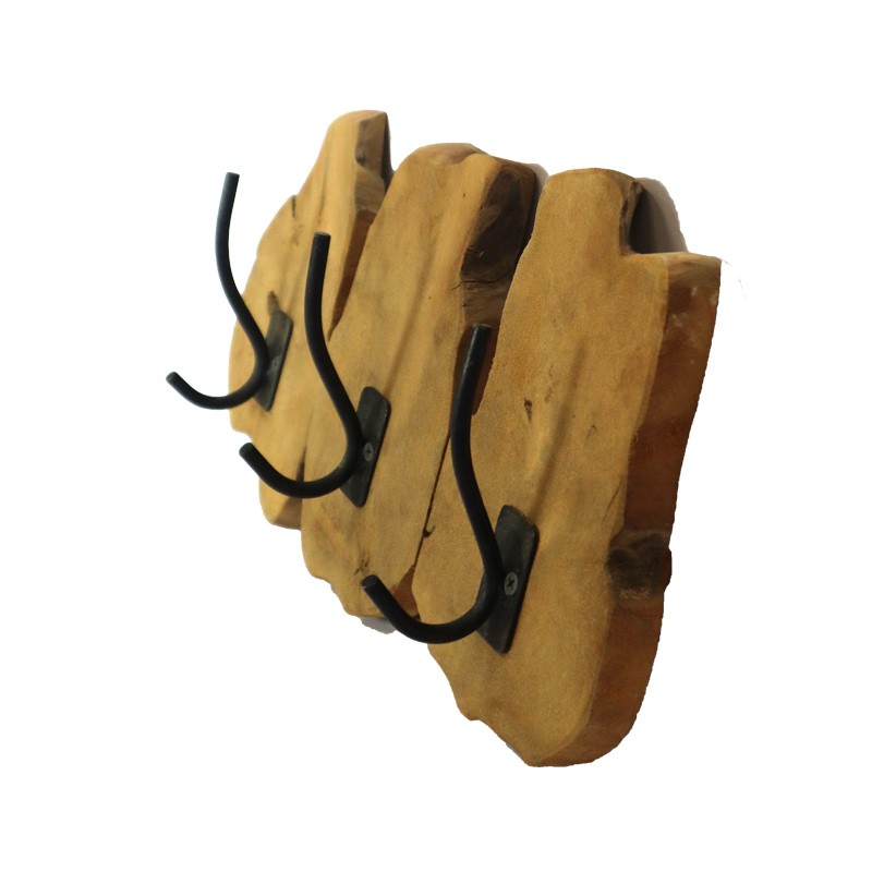 Holzgarderobe Teak, 3 Holzscheiben mit Haken, 46x20cm, DIJK Natural Collections