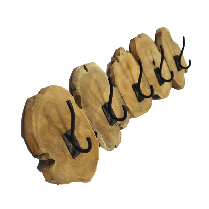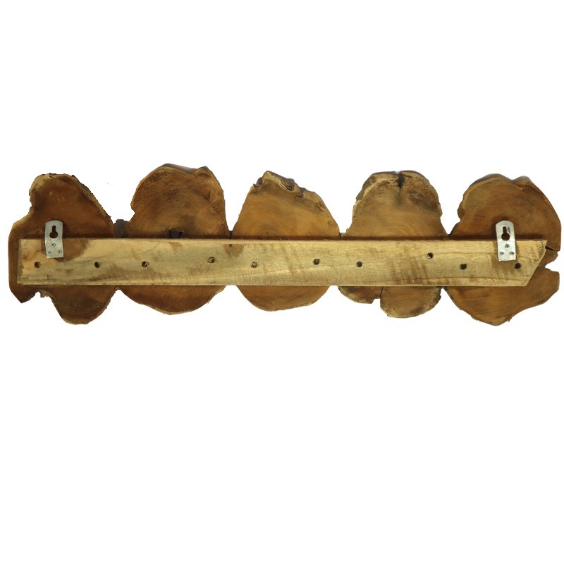 Holzgarderobe Teak, 5 Holzscheiben mit Haken, 78x20cm, DIJK Natural Collections