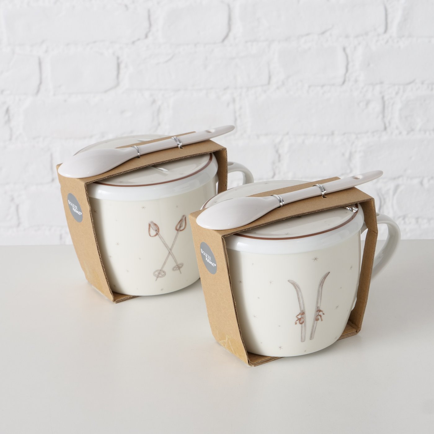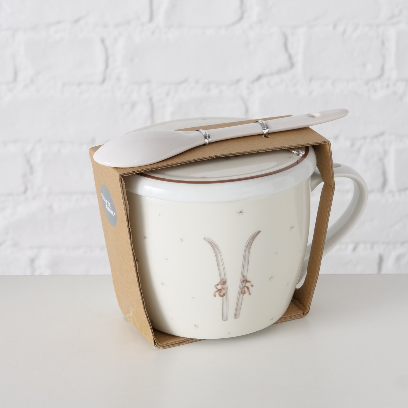 Produktinformationen "Jumbobecher Winter Ski, Henkelbecher mit Löffel und Deckel, 600ml, Boltze Home Collections"