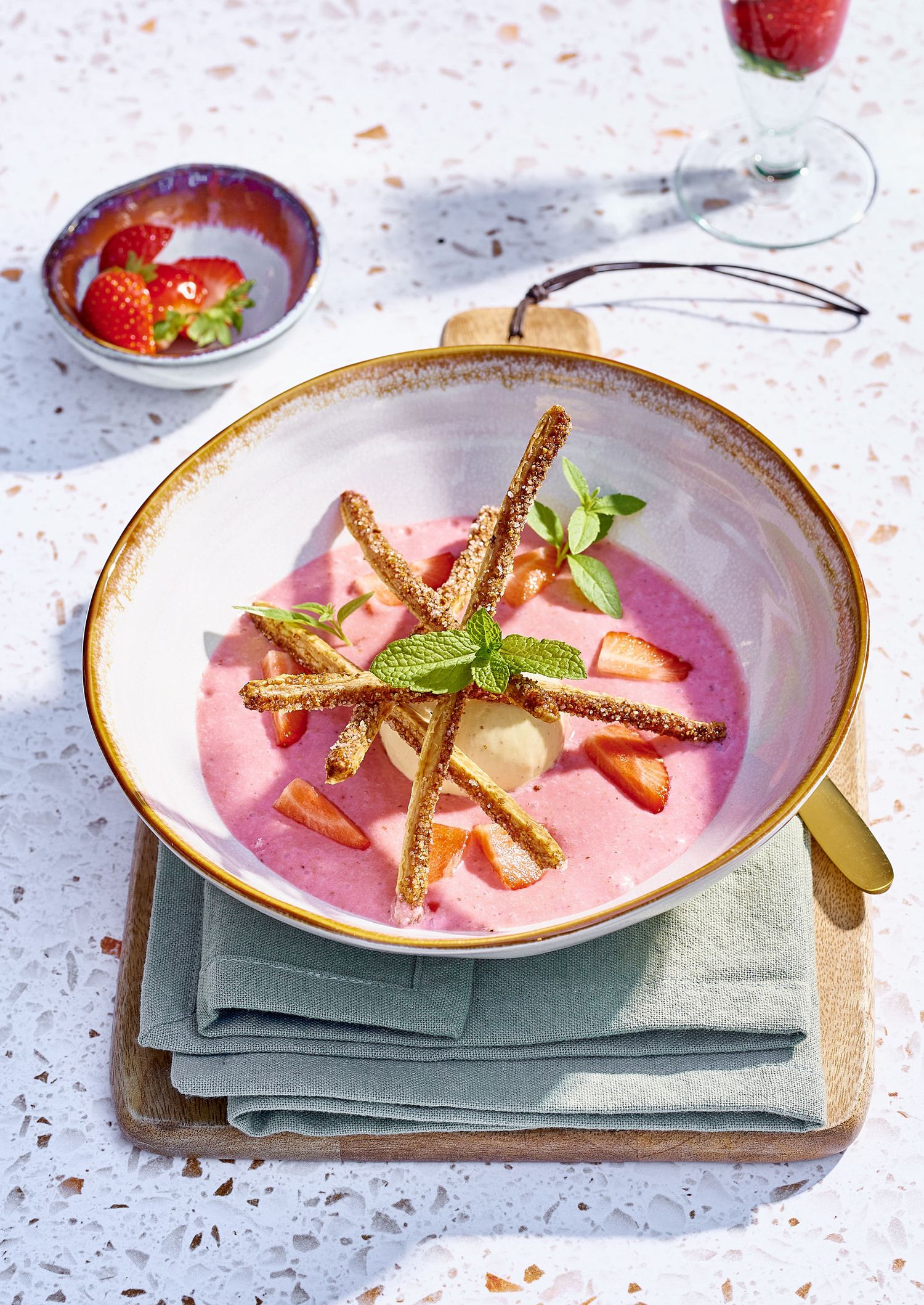Keramik Schüssel, Tabo, handgefertigt, weiß, Rand braun, 6x20cm, Mica Decorations