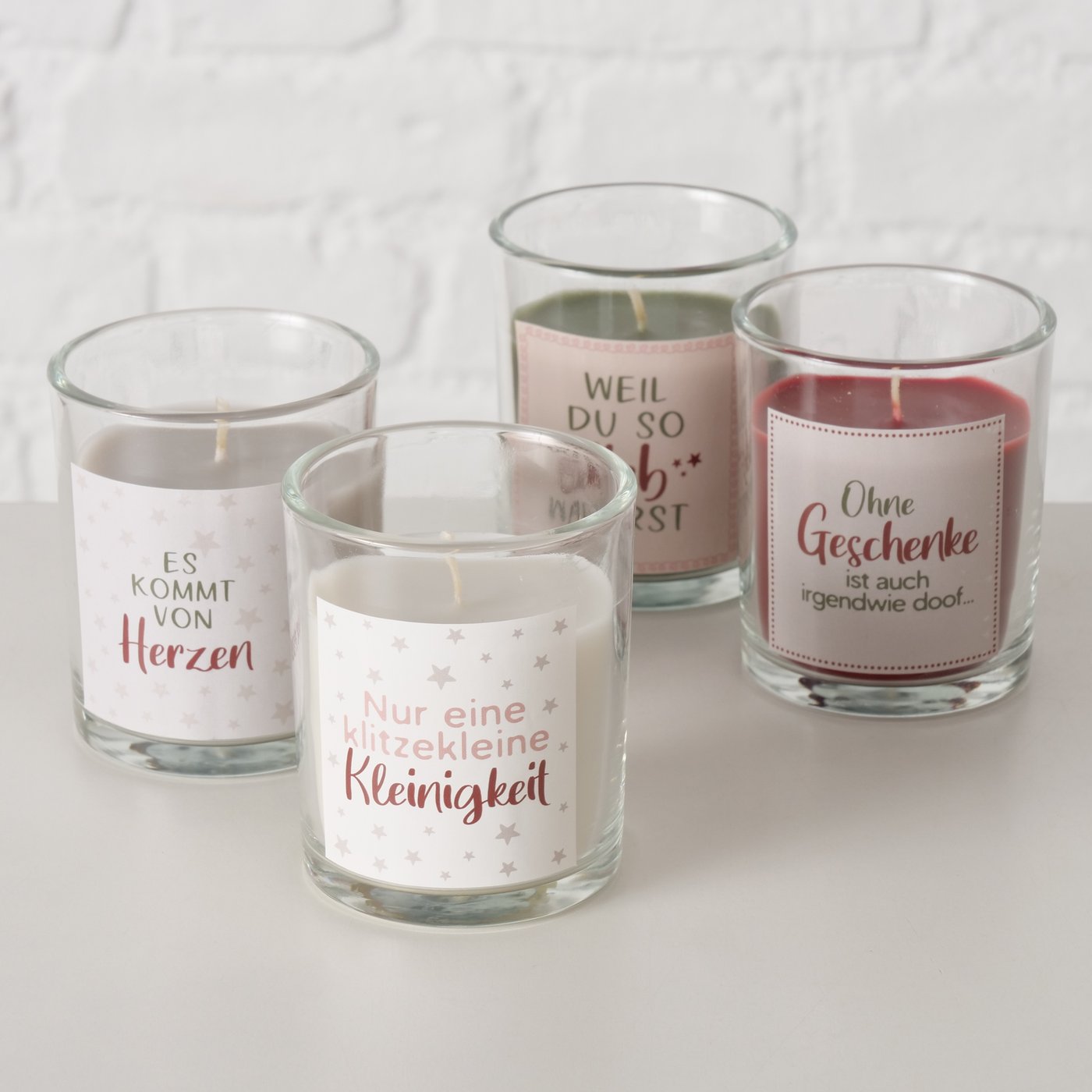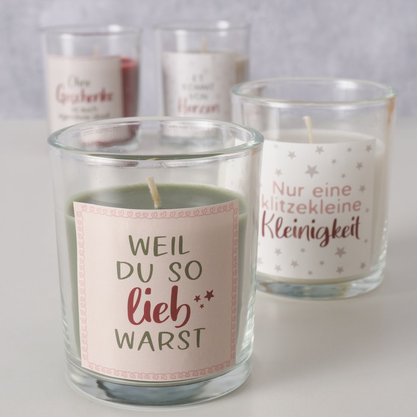 Kerzenglas Mitbringsel mit Spuch, 4 versch. Motive, 7x6cm, Boltze Home Collections