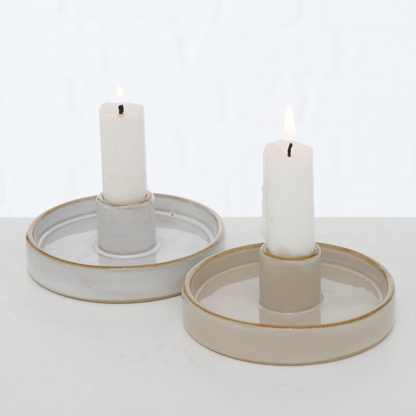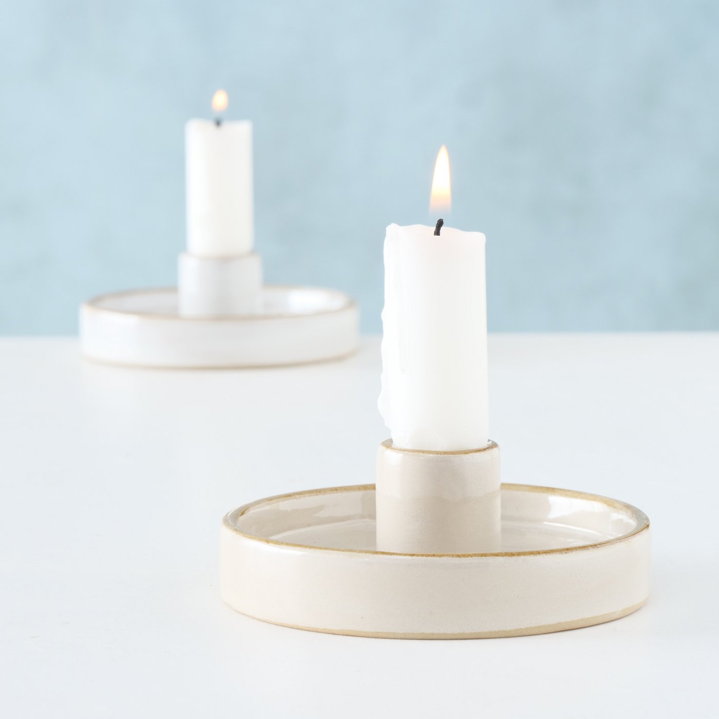 Kerzenständer Schale Marima, Keramikschale beige für Stabkerzen, Ø10cm, Boltze Home Collections