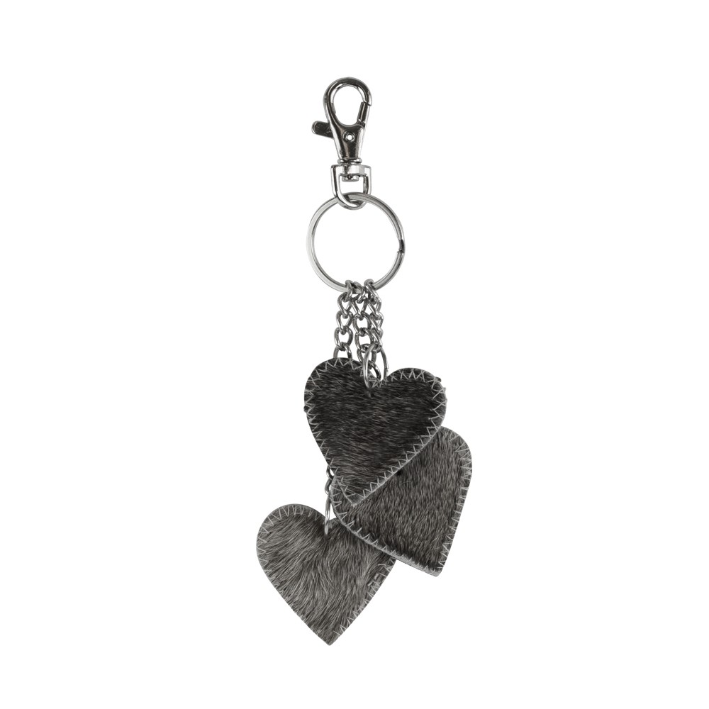 Kuhfell Schlüsselanhänger, 3 Herzen, grau, 12cm, Mars & More