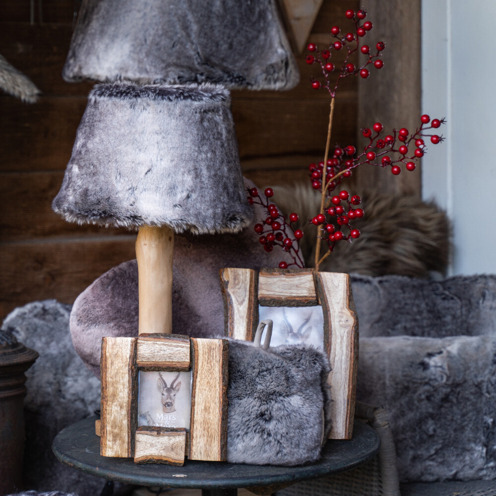 Kunstfell Lampenschirm, Wolf grau, 30x20cm, Mars & More
