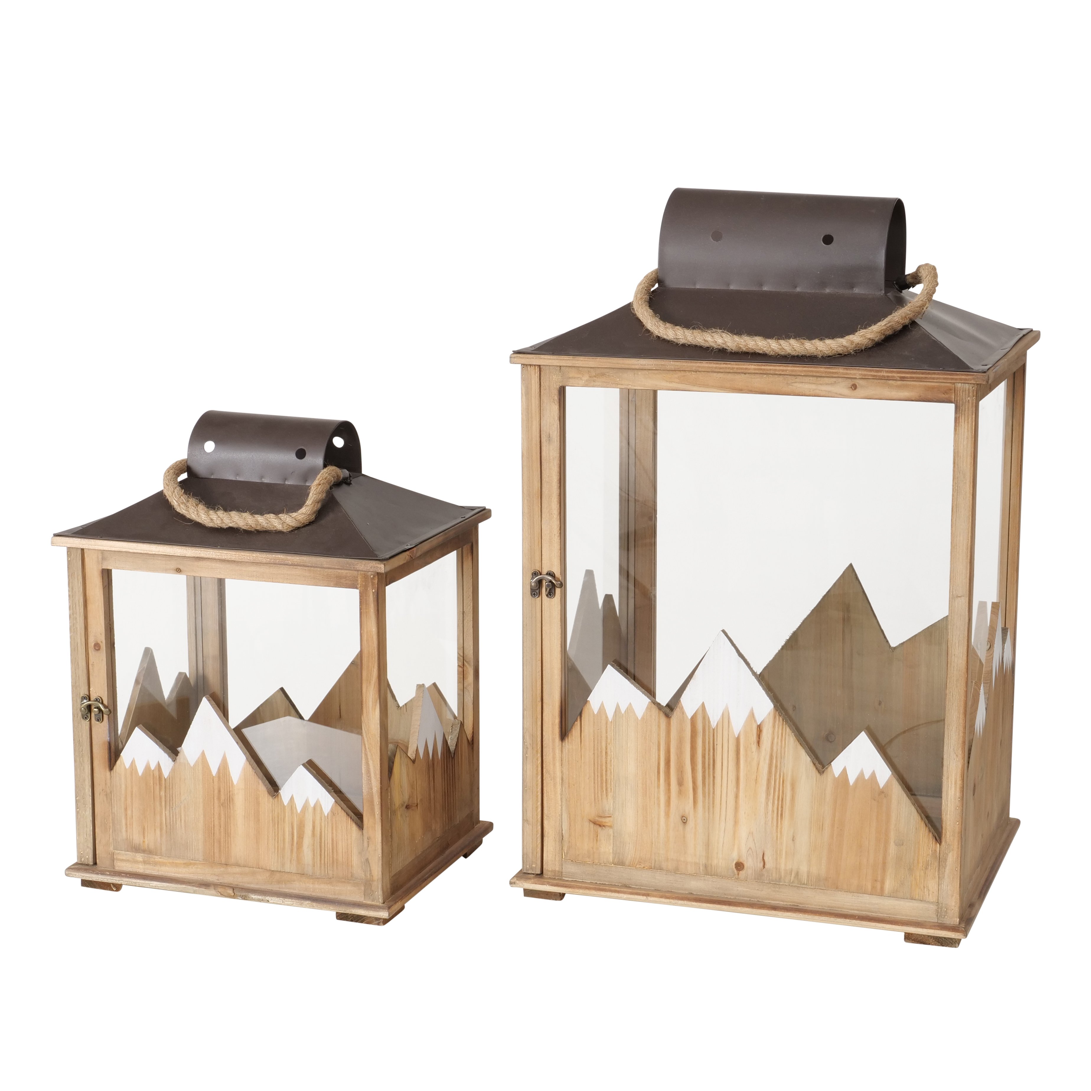 Produktinformationen "Laterne Dolomiti, Holzlaterne mit Berge beschneit, 35x47cm, Boltze Home Collections"