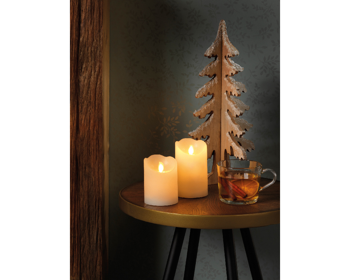 LED Flackerkerze creme, Wachskerze mit Flackerlicht und Timerfunktion, 12cm, Lumineo