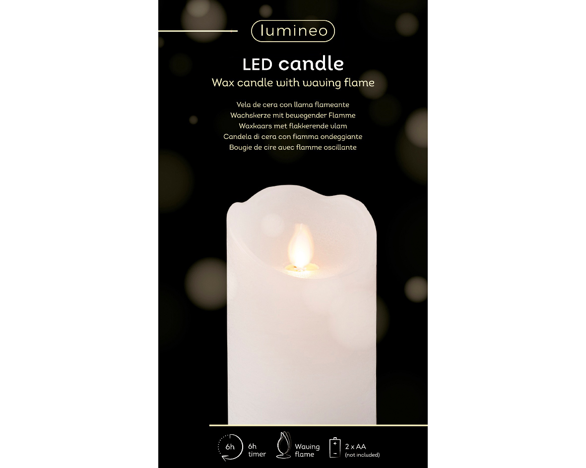 LED Flackerkerze weiß, Wachskerze mit Flackerlicht und Timerfunktion, 12cm, Lumineo