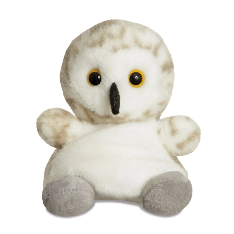 Palm Pals Schnee Eule 13cm Plüschtier hat das niedlichste kleine Lächeln, das jedem, den sie trifft, ein Lächeln ins Gesicht zaubert.