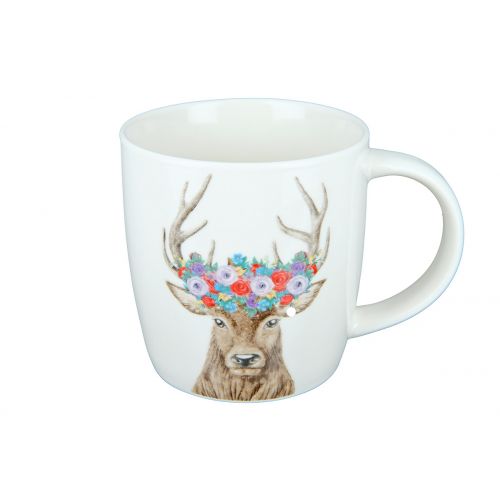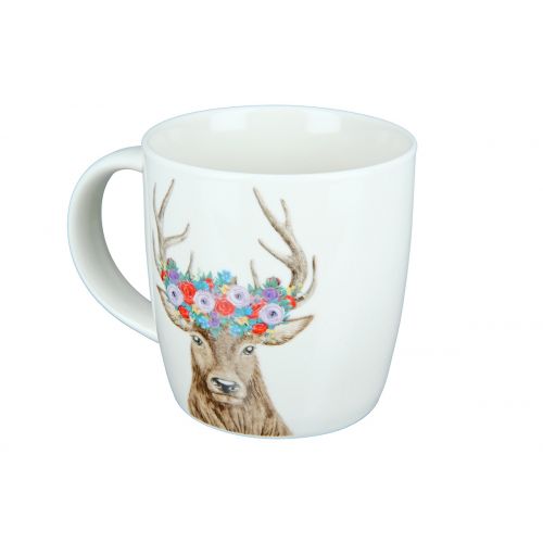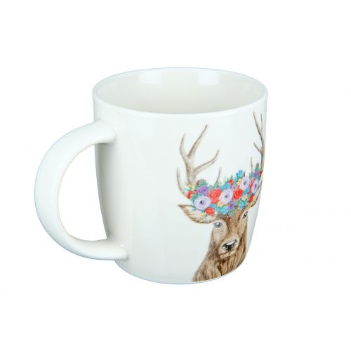 Produktinformationen "Porzellan Tasse, Henkelbecher mit Hirschkopf und Blumenkranz, 380ml, Gilde Handwerk"