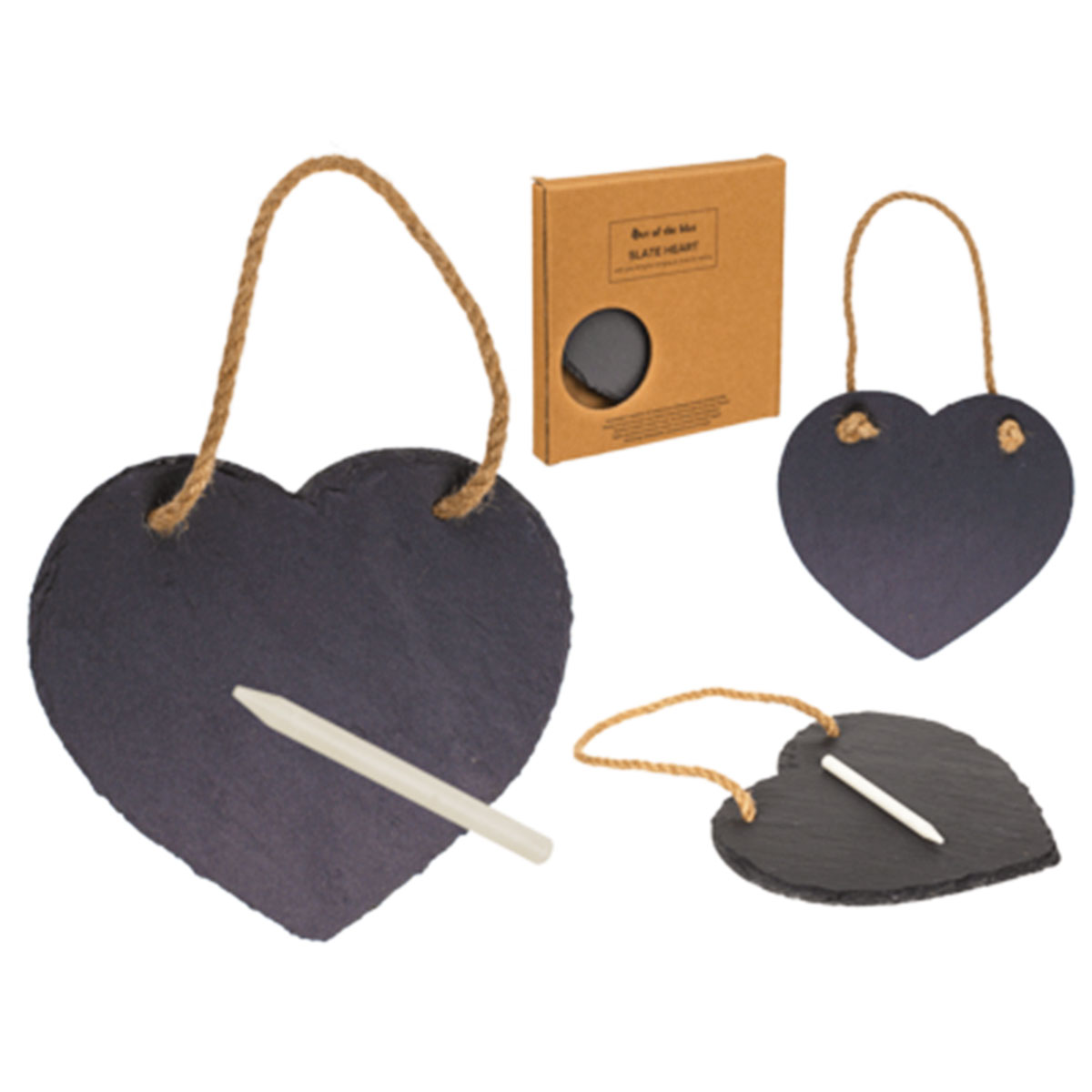 Schiefertafel Herz mit Kreide, Memotafel in Herzform, 15x15cm, zum Hängen, Out of The blue