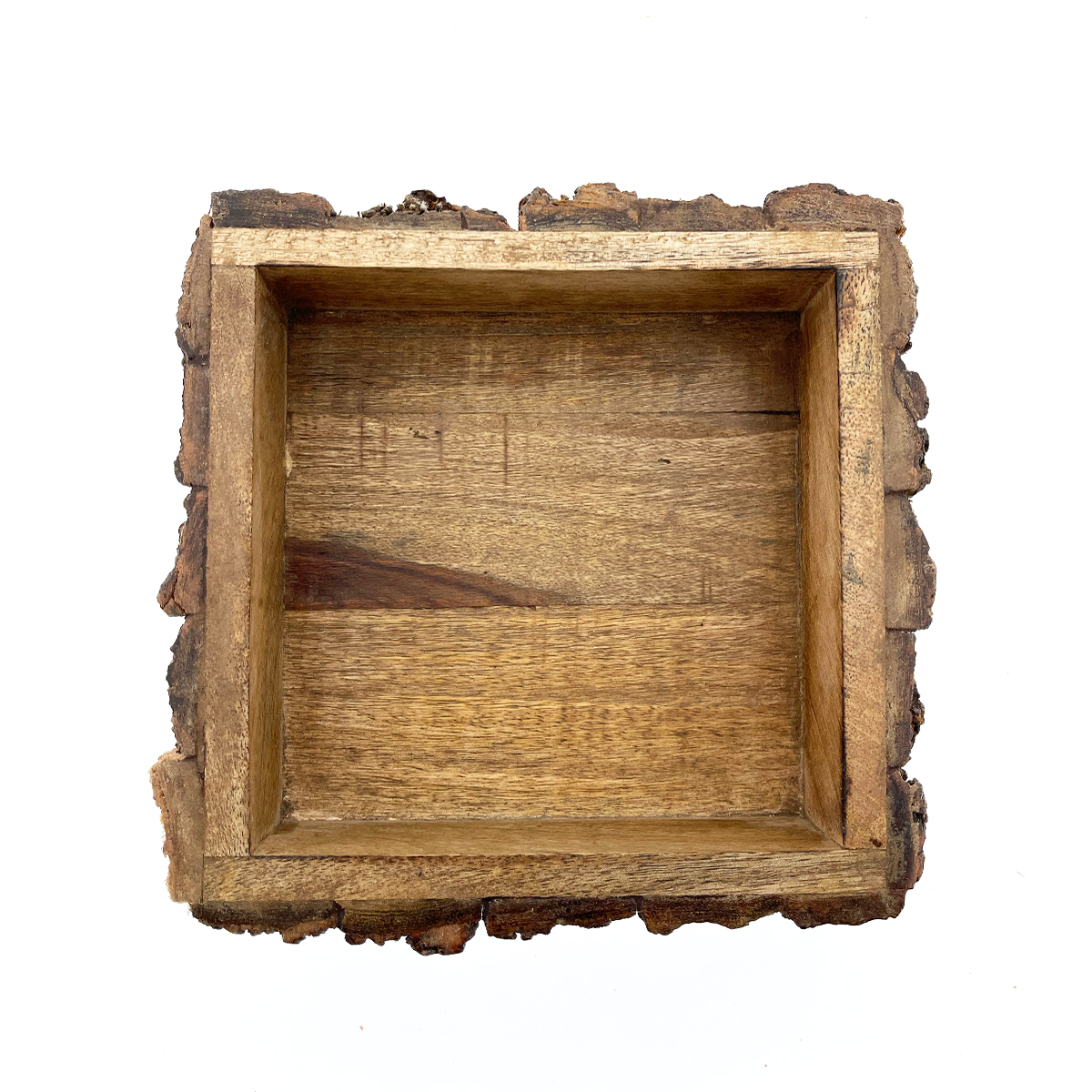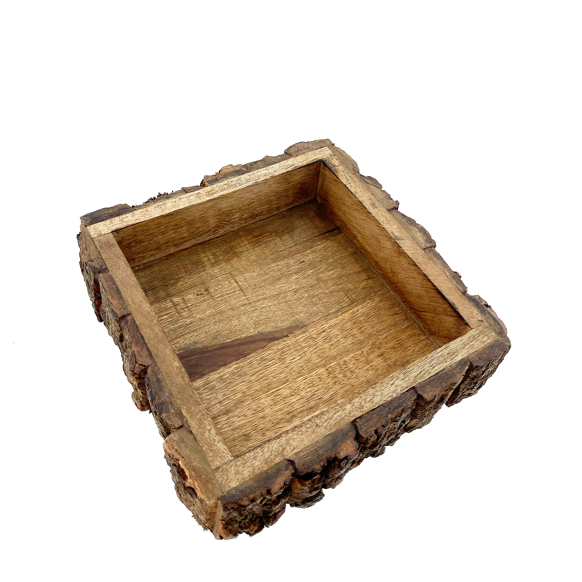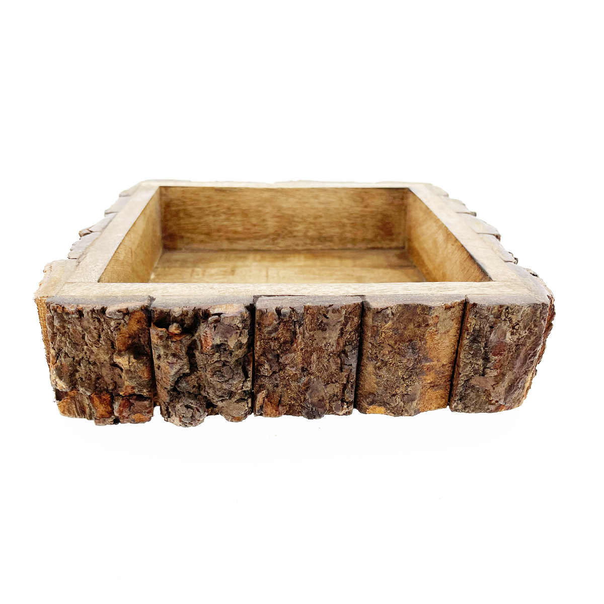 Produktinformationen "Serviettenhalter Naturholz, Holzschale mit Rinde, Serviettenbox, 22x22x5cm"