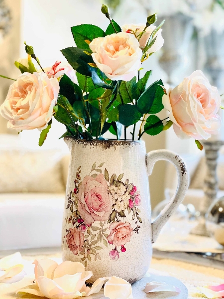 Steingut Krug mit Henkel, Rosen, 15x23cm
