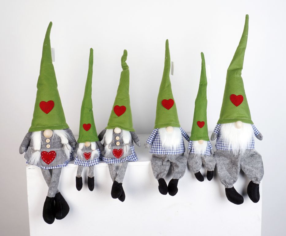 Wichtel "Felix und Anna", 53cm, sitzend, grüne Filzmützen, Set/2