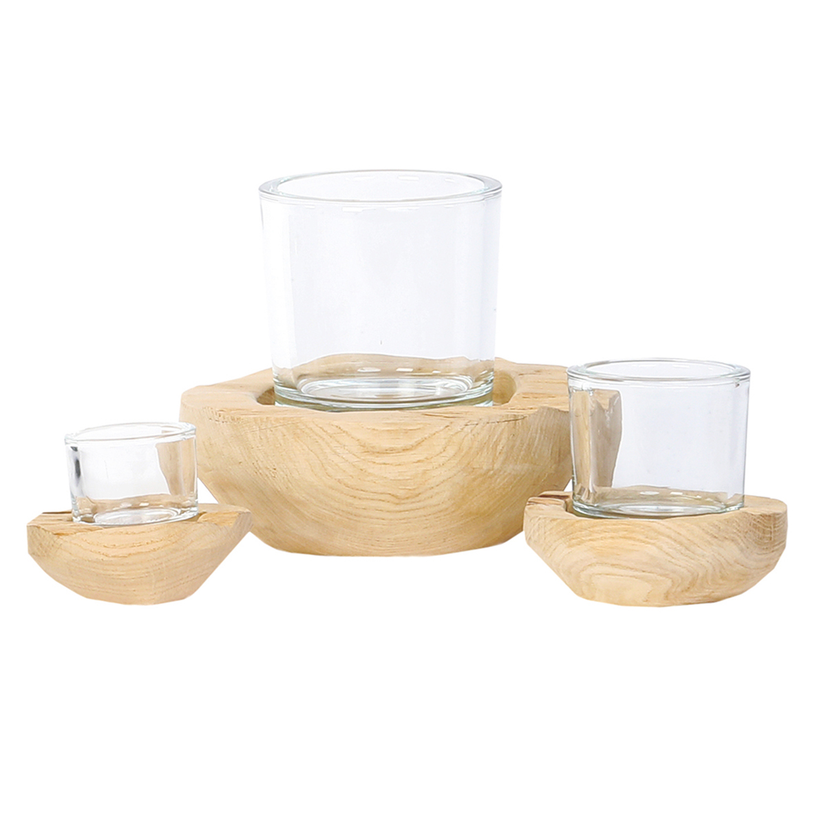 Windlicht Naturholz Knut, Naturholzschale mit Glaskörper, 8cm, WMG Grünberger