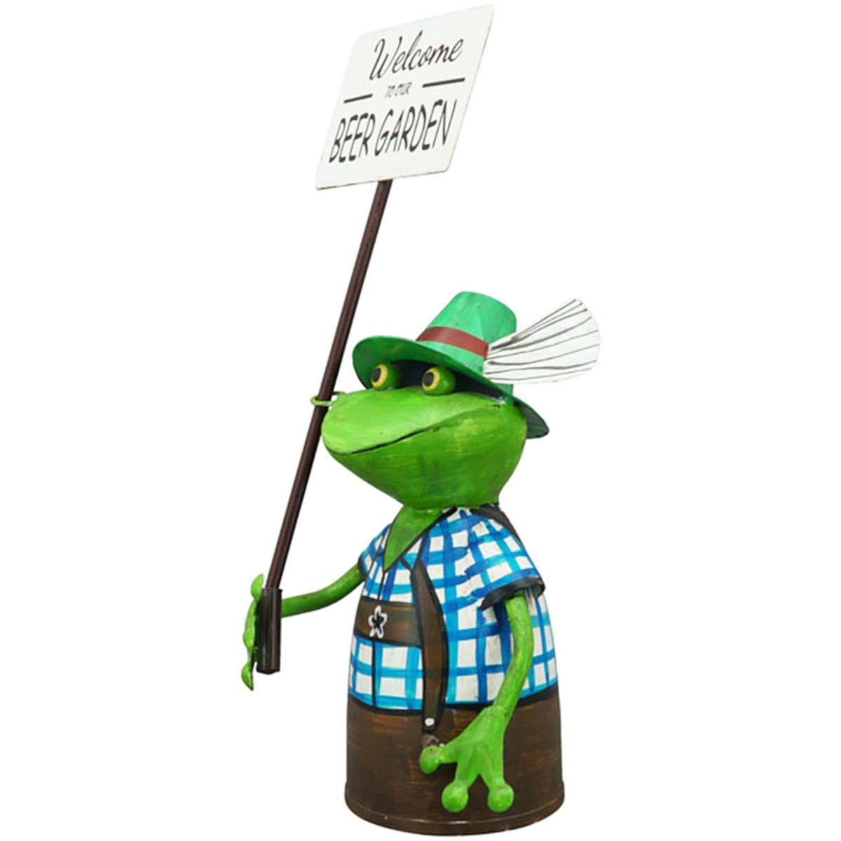 Zaunhocker Frosch, Frosch in Tracht mit Schild Welcome, 15x30cm, Metall