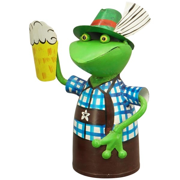 Zaunhocker Frosch, Trachtenfrosch mit Bierkrug, 14x20cm, Metall